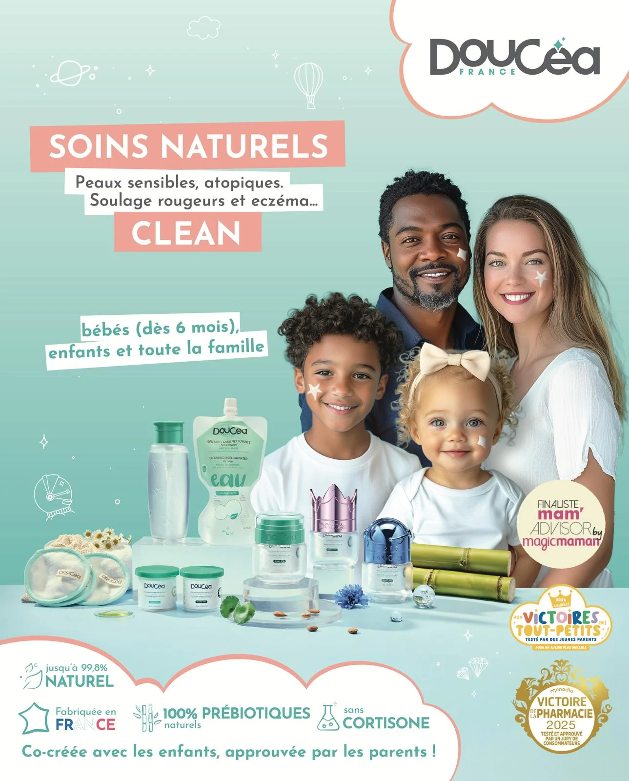 La crème APAISEA est un soin du visage dermo-pédiatrique à partir de 3 ans et fabriquée en France, conçu pour répondre aux besoins des peaux sensibles, sèches et fragiles, avec une composition exceptionnelle :
